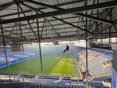 Here are some important safety conditions for our rope access work. An HSE plan, safety plan with Task Risk Analysis is drawn up for each job, to which all employees involved must adhere. During abseiling, one must always be anchored at two points. These anchors must be tested at 1,500 kg. Should the main line break, there is always a second line as back-up.
