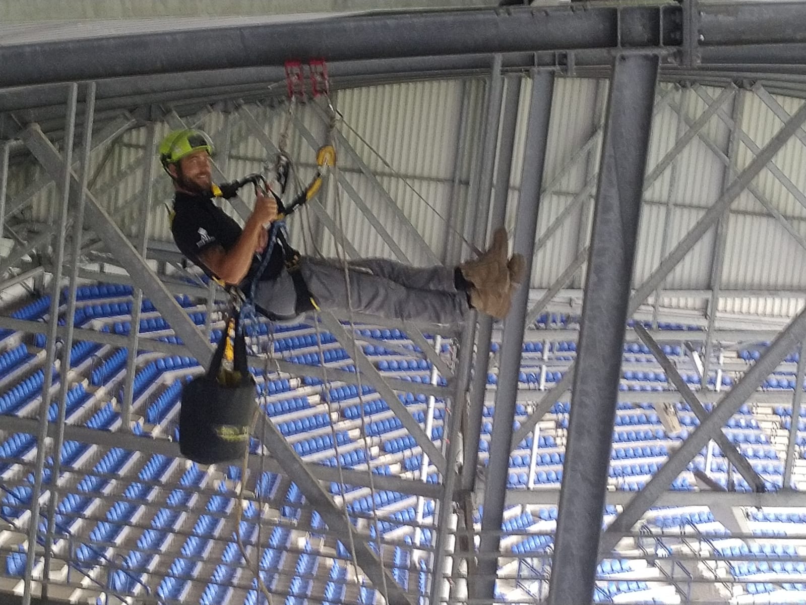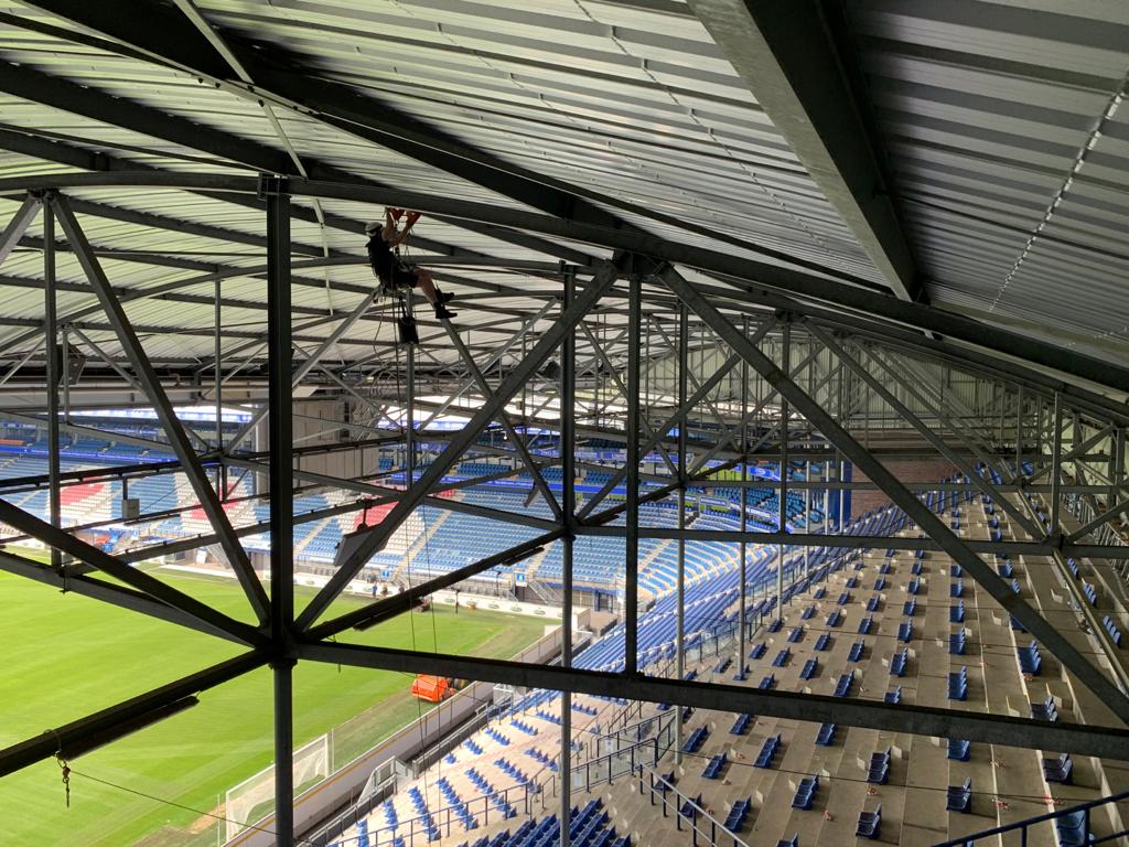105 Views 0 Likes Inspection work football stadium abseiltechnieken Abe Lenstra A.T.I. Abseiltechnieken performed inspection work at the Abe Lenstra stadium. The hoisting system for the flags of the Nieuw Noord stand was professionally inspected by our employees.