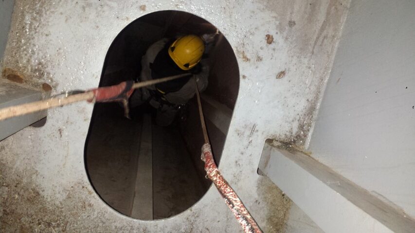 In cooperation with Smits real estate Rotterdam A.T.I. Rope access techniques has completed painting work in the inside of the big crane at the iron ore bulk terminals of the EECV Rotterdam. Through our rope access techniques we could easily access the inside of the small area and cleaned and painted the inside as requested.