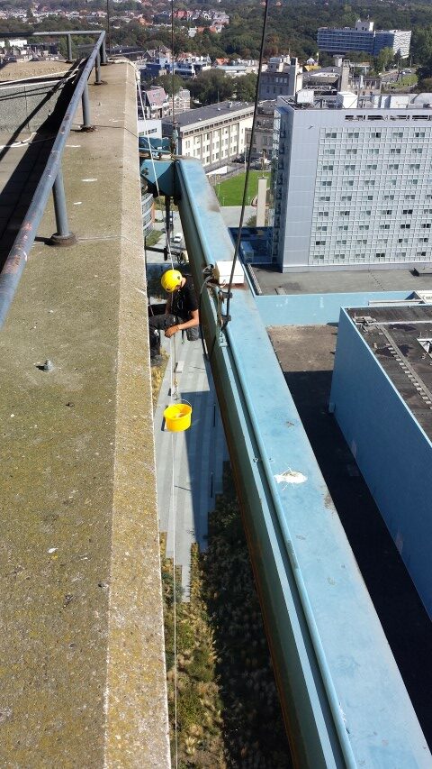 On behalf of Image Building, ATI Abseiltechnieken carried out assembly work on the giving of the Toren van Oud in The Hague. Our rope access techniques allowed us to easily reach the work sites and thus carry out the work safely and quickly for the client.