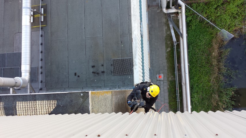 Repair work on facade cladding at height in Leeuwarden abseiltechniques