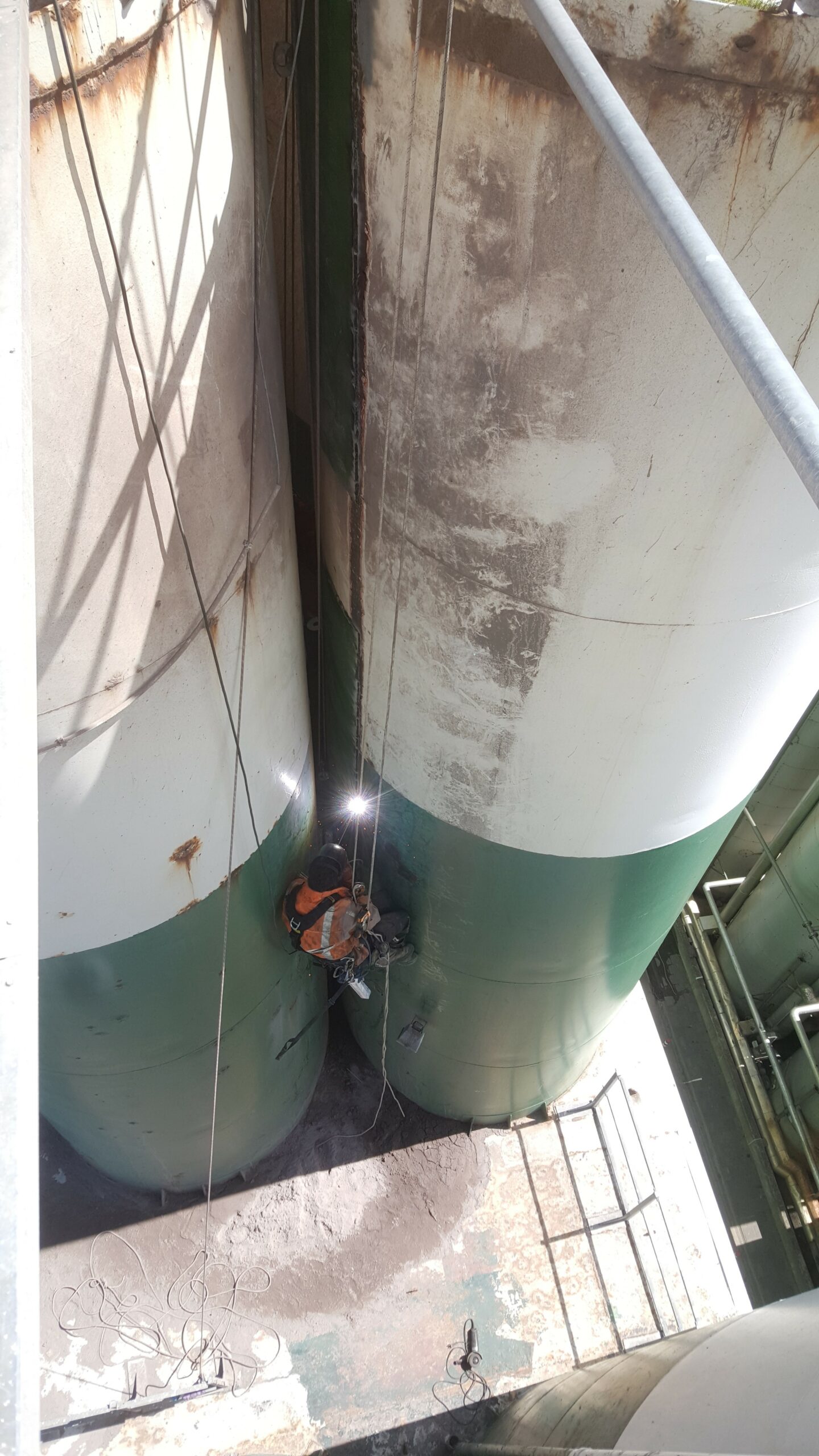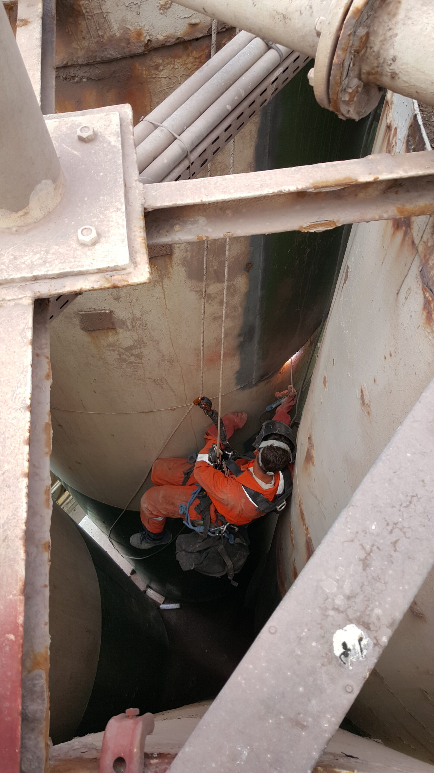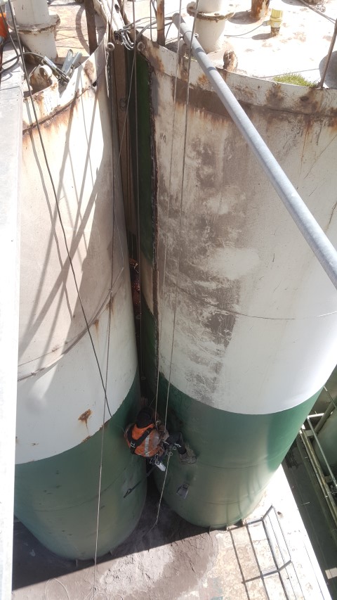 A.T.I. Abseiltechnieken carried out remedial work on a silo. The location of the work was at a considerable height and very difficult for the client to reach. However, our rope access techniques enabled us to easily position ourselves at the site from above and thus still carry out the required repair work.
