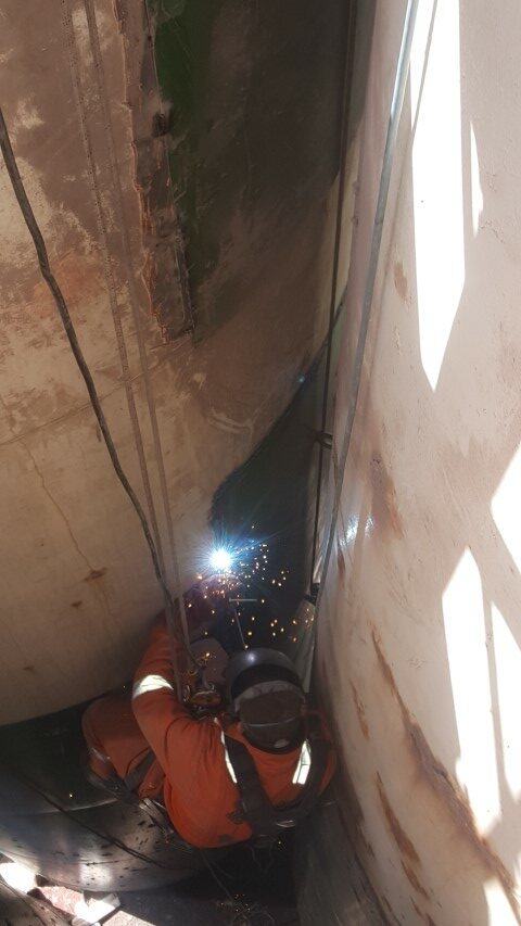 Welding and repair work at height by abseiltechnieken IRATA