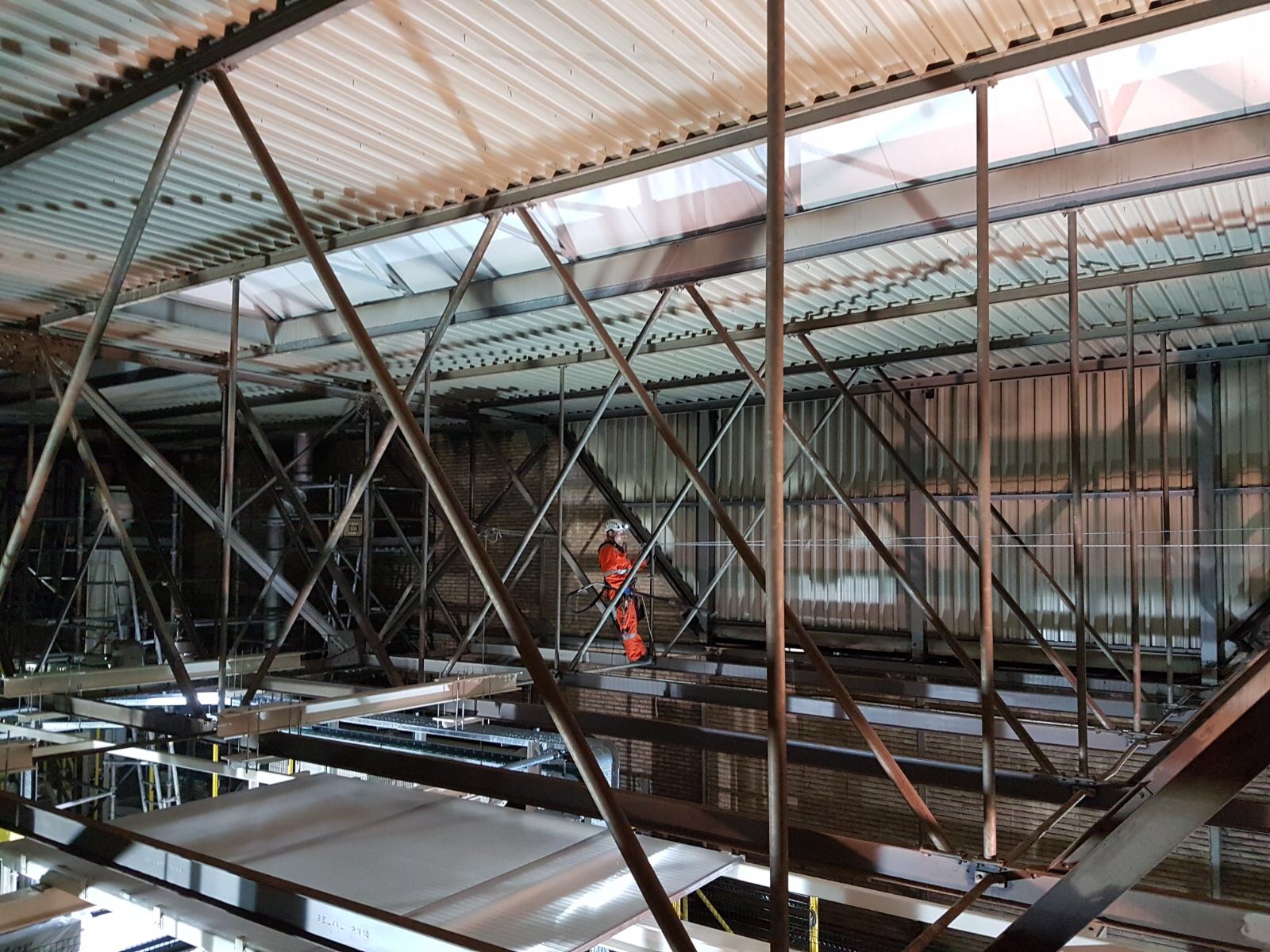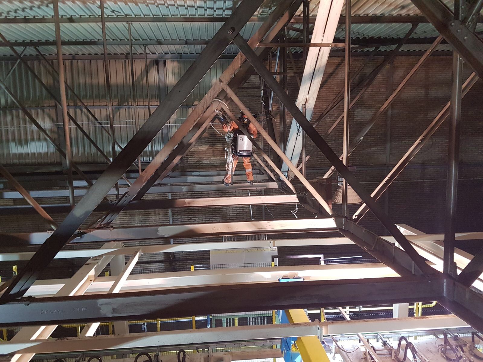 Van Alphen asked A.T.I. Abseiltechnieken to clean parts of a steel construction. Various parts of the steel construction were very difficult to reach, so applying our rope access rope techniques was a good solution to clean these parts. Our rope access specialists were able to position themselves safely and efficiently through the steel structure, thus performing the cleaning work for the client.