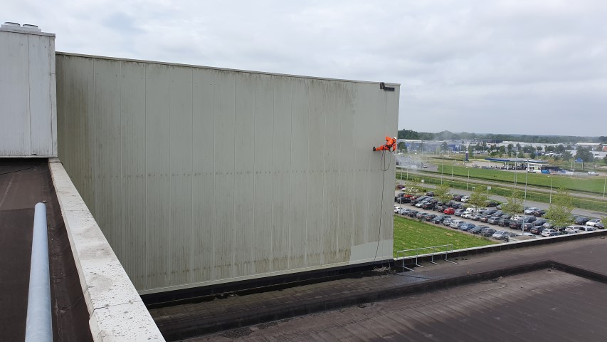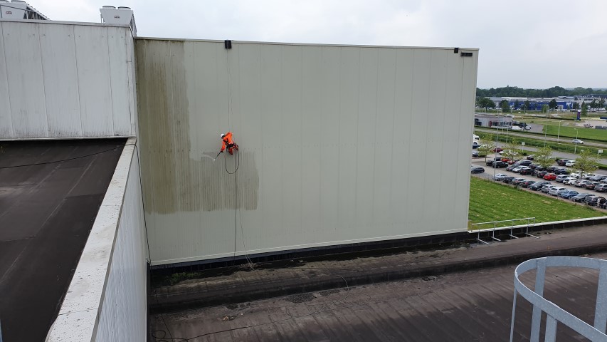 A.T.I. was commissioned by Rimato bv Hoogeveen. Abseil techniques cleaned a facade of a business premises in Hoogeveen. The façade was difficult to reach with traditional aerial work methods. This made the use of our abseiling techniques a good alternative to still carrying out the work. By using the right anchor points present on location, we were able to perform the work safely and efficiently for the client. Our rope access specialists could easily position themselves on location and thus clean the facade.
