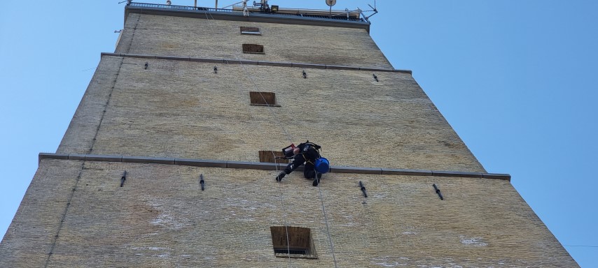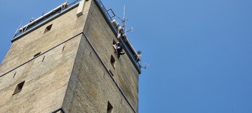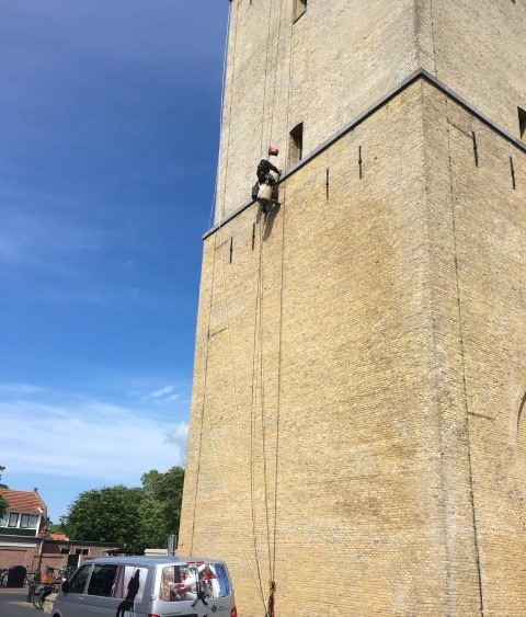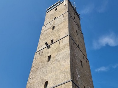 Abseiltechnieken carried out maintenance work on Brandaris lighthouse, Terschelling