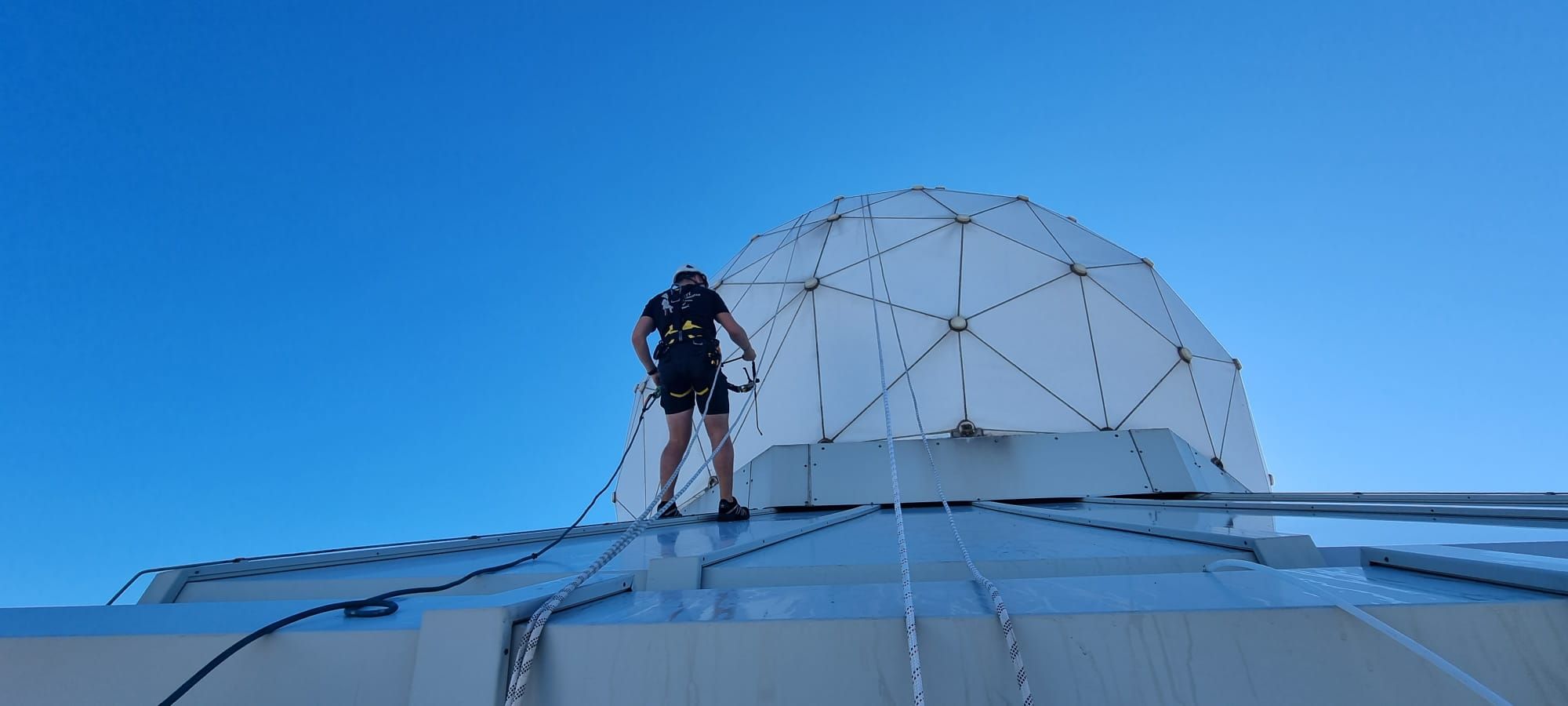Abseiling maintenance work radome Schiphol Tower