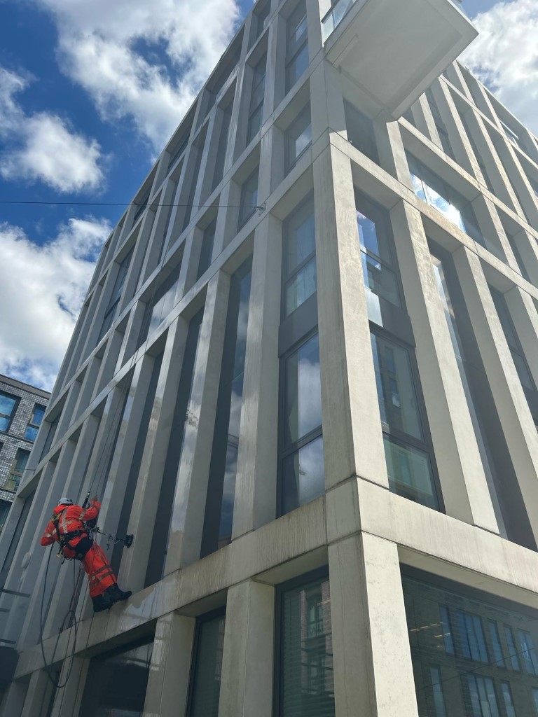 Facade cleaning and hydrophobing Amsterdam using abseiling techniques